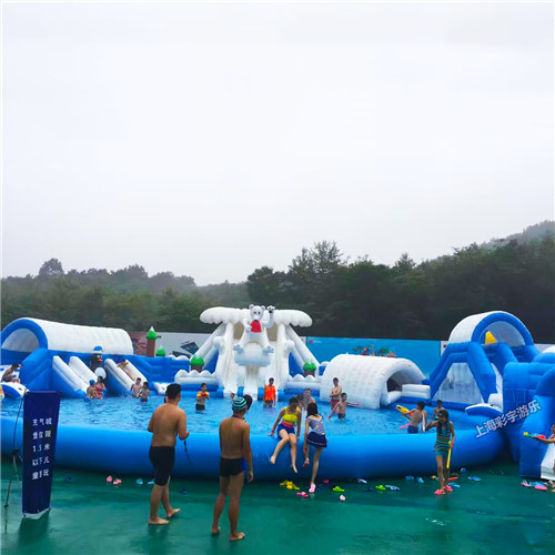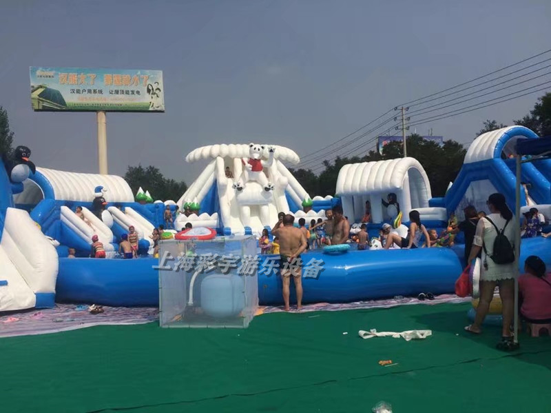 冰雪世界充氣水上樂園設備是以冰雪世界為主題,人在冰天雪地中穿梭,。冰雪世界充氣水上樂園配有多個不同高度的滑梯,滿足了不同游玩人群的需求。樂園中配有一個充氣水池,水池中可以放一些水上浮具,如充氣冰山、蹦蹦床、蹺蹺板等可以讓玩法更加豐富 產品特點-冰雪世界顏色以白色和淺藍色為主,給炎炎夏日游玩的人群帶去了涼爽的視覺感受,仿佛置身于冰天雪地之內,再產品造型上融入進了多種元素,如企鵝,北極熊,冰屋等,造型非常逼真,讓游客忍不住會有前去體驗的沖動。 激情水世界,清爽一整夏,還等什么,趕快來體驗吧
