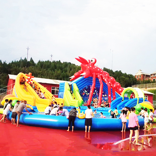 滑梯組合戲水,與充氣水池相互完美的結合,不僅造型獨特新穎,而且玩耍過程中樂趣無窮。該產品以可移動支架水池、充氣水池為構架,用充氣游樂設施來形象描敘不同的動漫、文化元素的主題式水上游樂項目,其產品組合中,融合了支架、充氣和文化的特點