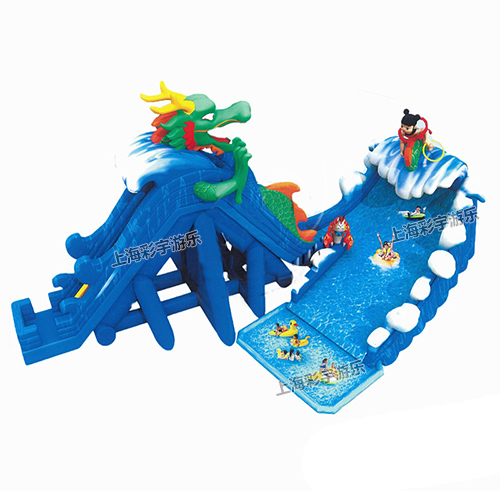 外觀設計以中國古典“哪吒鬧?!睘楸尘?,文化底蘊豐富。哪吒和海龍的打斗使整個滑梯生動形象。