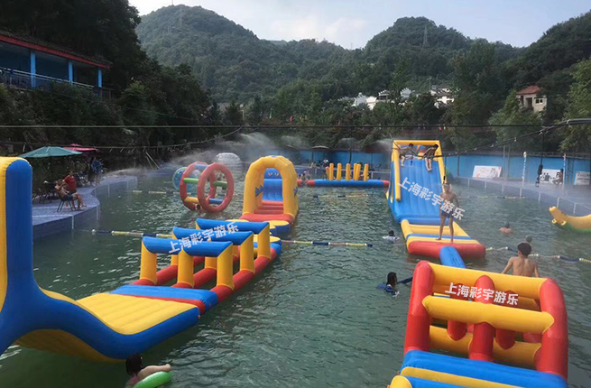2.可移動性:充氣水上沖關設備對場地的要求相對較低,只需要有一塊平坦空曠的場地就可以滿足,配合其便攜性的特點,使得沖關設備在任何地點都可以進行經營。彌補了目前流行沖關設備地點固定的缺點。